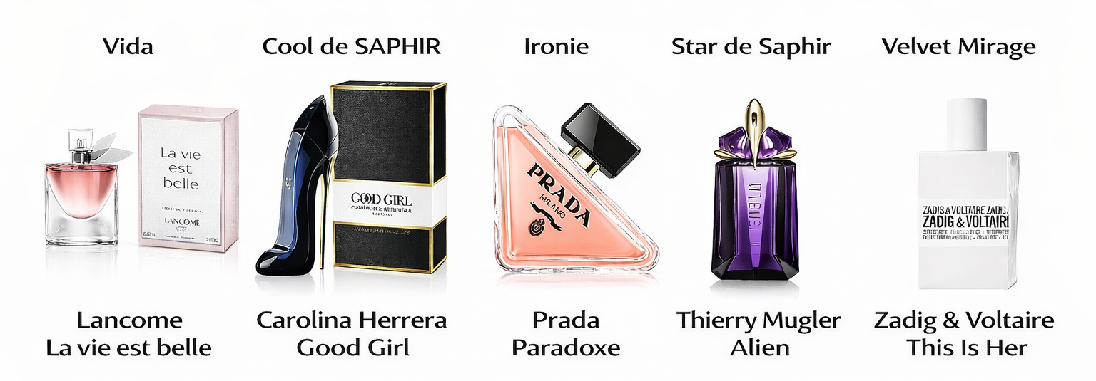 Inspirováno značkou: Lancome, Carolina Herrera, Thierry Mugler, Zadig & Voltaire, Prada